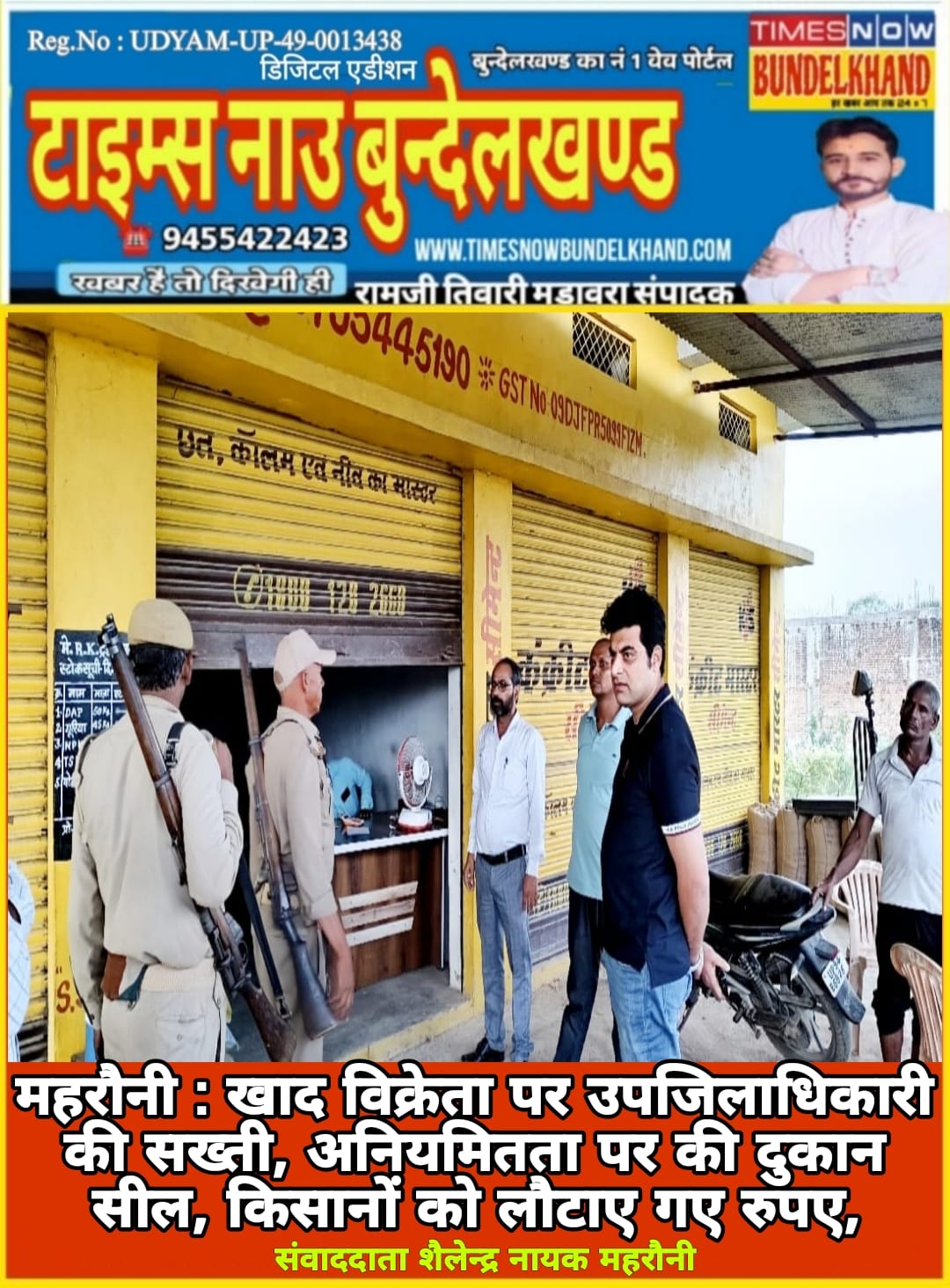 खाद विक्रेता पर उपजिलाधिकारी की सख्ती, अनियमितता पर की दुकान सील, किसानों को लौटाए गए रुपए,